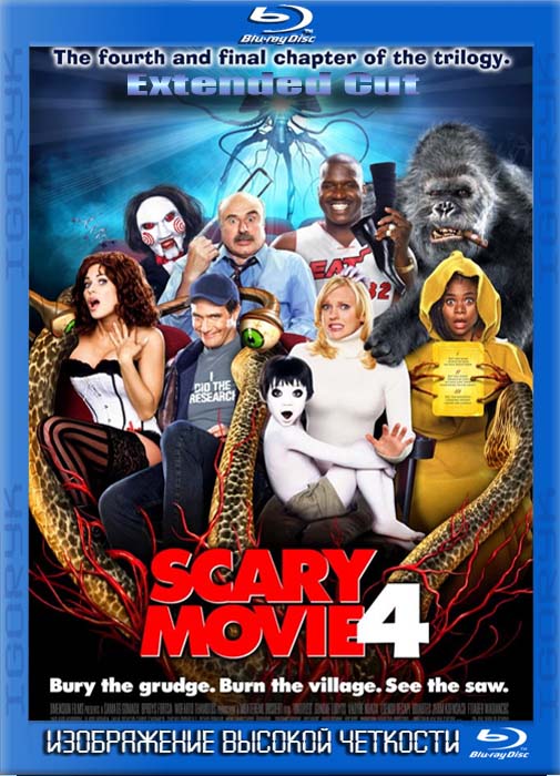 И вновь над героями многосерийного эпоса "Очень страшное кино" сгущаются тучи. А заодно и над всей Землей. Злые пришельцы в гигантских mp3-плеерах, измазанные белилами раскосые призраки, лихо гоняющие на трехколесных велосипедиках маньяки в масках. Волею судеб лишь ослепительная блондинка Синди Кэмпбелл и благородный крановщик Том Райан могут спасти человечество от неминуемой гибели и фатальной тяги к распрямляющим извилины блокбастерам. Но для этого им придется совершить поистине небывалое: похоронить "Проклятие", уценить "Малышку на миллион", сравнять с землей "Горбатую гору", спилить "Пилой" "Таинственный лес" и выиграть "Войну миров".