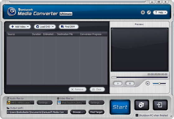 Daniusoft Digital Media Converter - мощный конвертер, поддерживающий как обычные мультимедийные файлы, так и файлы с цифровой защитой DRM.