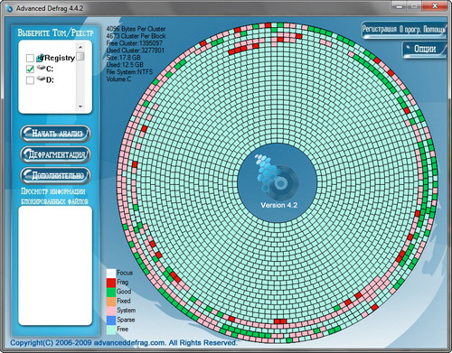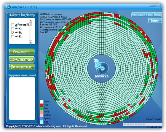 Advanced Defrag - профессиональная и мощная программа призванная вылечить медлительность вашего компьютера и предотвратить возможное падение системы. эта программа в своей работе применяет самые передовые технологии что позволяет вам быстро проанализировать состояние дисков и убрать полностью и надежно всю найденную фрагментацию в системе, освободив массу рабочего дискового пространства и доведя до максимума производительность всего за несколько минут. Advanced Defrag определенно вернет вам здоровый и быстрый компьютер точно таким когда он впервые появился в вашем доме!