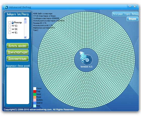 Advanced Defrag - профессиональная и мощная программа призванная вылечить медлительность вашего компьютера и предотвратить возможное падение системы. Программа в своей работе применяет самые передовые технологии что позволяет вам быстро проанализировать состояние дисков и убрать полностью и надежно всю найденную фрагментацию в системе, освободив массу рабочего дискового пространства и доведя до максимума производительность всего за несколько минут. Программа определенно вернет вам здоровый и быстрый компьютер точно таким когда он впервые появился в вашем доме.