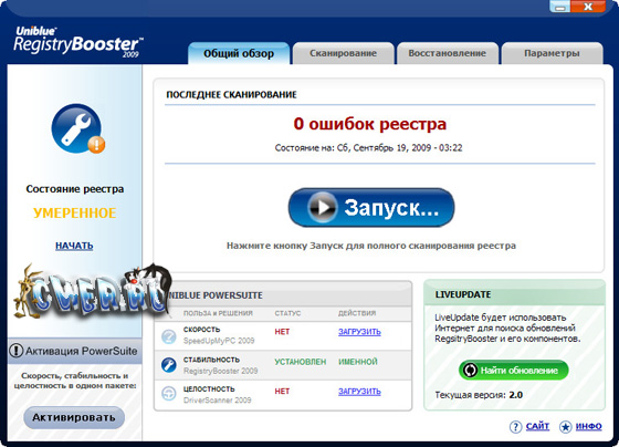 Пакет утилит от cертифицированного представителя Microsoft и ведущего продавца программного обеспечения Uniblue PowerSuite - объединяет в себе три утилиты: Registry Booster, Uniblue SpeedUpMyPC и DriverScanner.