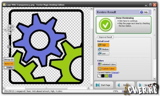 Vector Magic - программа умеющая конвертировать растровую графику в векторную. Минимум настроек, максимум простоты и удобства. Конвертирует растровые форматы JPG, TIF, GIF, BMP в векторные EPS, SVG и PDF.