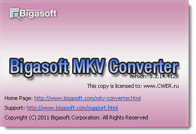 Bigasoft MKV Converter - конвертер MKV, MKА аудио и видео форматов в другие аудио и видео форматы, поддержка AVI, DivX, Xvid, WMV, MP4, H.264, MOV, HD и других форматов, извлечение аудио из видео в MKA, MP3, WAV, WMA, AAC аудио форматы.