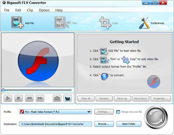 Bigasoft FLV Converter - программа для конвертирования FLV видео файлов в другие видео форматы, поддержка AVI, Xvid, DivX, MP4, WMV, MOV, MPEG, MPG, FLV, F4V, F4P, HD FLV и других форматов, извлечение аудио из видео в MP3, WAV, M4A, AAC аудио форматы, поддержка iPod, iPhone, Apple TV, Sony PSP, Zune, Creative ZEN, cell phones, Pocket PC.