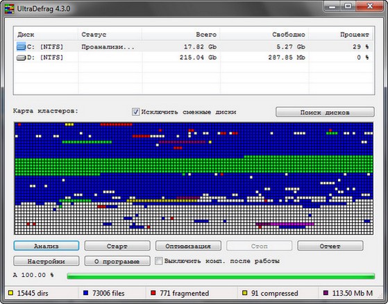 UltraDefrag - программа для быстрой дефрагментации диска (дефрагментация производится в режиме ядра). Имеет три интерфейса: графический, собственный и консольный.