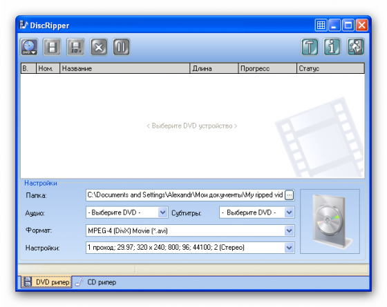 Nuclear Coffee DiscRipper - рипер-конвертор двойного назначения, - для кино и музыки. Позволяет снимать видео и аудио информацию с audio CD и DVD video дисков и конвертировать их в удобочитаемые компактные и мобильные форматы: видео DVD с двойным проходом в AVI, MPEG1, MPEG2, MPEG4, DIVX, XVID, H.264, WMV, 3GP, 3G2; аудио CD в MP3, OGG, WAV, APE. Это позволяет легко просматривать, прослушивать и передавать материал не только на бытовых проигрывателях, но и на мобильных устройствах, например таких как iPod, iPhone, PSP, Creative Zen и прочих. Имеет гибкую систему установки необходимых выходных параметров.
