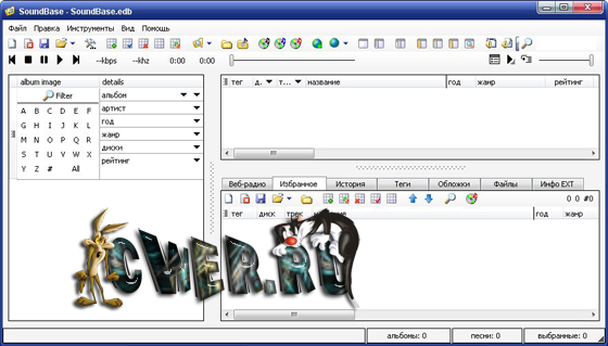 Soundbase - универсальная программа для проигрывания и сортировки музыкальных файлов. Soundbase содержит аудио плеер, средства для сортировки и поиска музыкальных альбомов и файлов, а также мощный инструмент для добавления и редактирования метаданных разных аудио форматов.