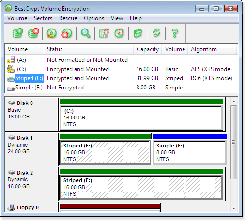 Программа BestCrypt Volume Encryption обеспечивает прозрачное шифрование всех данных, хранящихся на жёстких и съёмных дисковых устройствах. Термин прозрачное шифрование данных означает, что шифрование происходит автоматически, как только эти данные запрашиваются операционной системой Windows или любыми другими программами. BestCrypt Volume Encryption - это первая программа, открывающая новый класс продуктов, шифрующих дисковые тома. С помощью такой программы пользователь имеет возможность шифровать как привычные дисковые разделы, так и современные дисковые тома, расположенные на нескольких дисках, например перекрытые тома, чередующиеся, зеркальные или тома RAID-5.