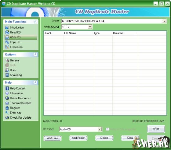 CD Duplicate Master – мощная утилита для дублирования CD. Позволяет извлекать цифровые аудио треки с CD в звуковые файлы на жесткий диск; запись аудио CD; копирование CD. Захватывать аудио треки с CD и сохранять их на жестком диске в различных аудио-форматах, как MP3, WMA, OGG и другие, а также создавать пользовательские CD с MP3, WAV, OGG и WMA файлов.