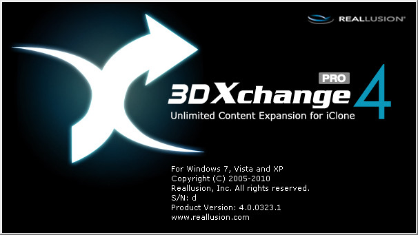 3DXchange 4 - утилита от компании Reallusion для конвертирования и преобразования в режиме реального времени файлов 3DS, OBJ, или SKP в файлы для использования в программе iClone 3 и выше. Программа может быть использована для преобразования библиотек существующих моделей в VNS (родной 3D формат iClone), что позволяет iClone кинематографистам обмениваться и просматривать материалы, делать их более доступными. Также программа позволяет использовать 3D объекты и модели из таких приложений, как DAZ 3D, Zbrush, 3D Studio Max, Maya, Google Sketchup, TurboSquid и Renderosity.