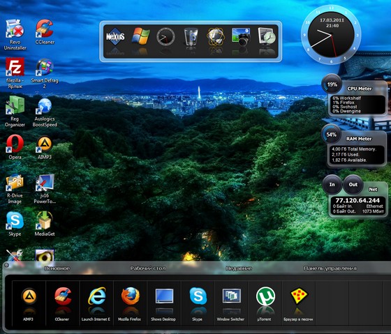 Winstep Xtreme - замена обычной оболочке Windows почти со всеми комфортными функциями, которых время от времени не хватает в обычной оболочке. Скачав пакет на cwer.ws, вы получите в управление несколько модулей (NextSTART, WorkShelf, FontBrowser, NeXuS), каждый из которых обладает собственным оригинальным комплектом функций. К примеру, модуль NextSTART полностью заменяет меню Пуск, Панель задач и системную область уведомлений (трей). Модуль WorkShelf может заменить Рабочий стол, FontBrowser - комфортный просмотрщик шрифтов, NeXuS - многоуровневая панель быстрого доступа к часто используемым приложениям.