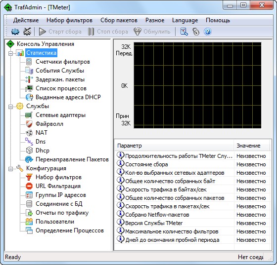 TMeter - это средство учета трафика и организации доступа в Интернет для операционных систем Microsoft Windows. Используя TMeter, Вы можете производить гибкий и точный подсчет трафика по любому признаку (IP адрес источника/назначения, протокол, порт и т.д.) в реальном масштабе времени с немедленным выводом на экран собранной статистики в графическом или цифровом виде.