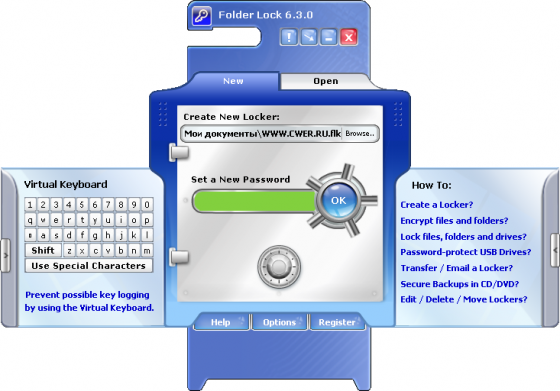 Folder Lock - эта программа позволяет защищать определённые файлы и папки в Windows, скрывая их, и таким образом делает недоступными для чужих глаз. Размер файла или папки при этом может быть любым - хоть, к примеру, 50 Gb. Для получения доступа к спрятанным данным достаточно запустить Folder Lock и ввести правильный пароль. Управление программой очень простое - поддерживается метод drag & drop (перетащил -> опустил -> спрятал).