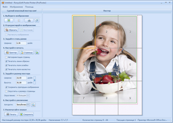 ProPoster - программа для создания и печати больших плакатов, знаков, рекламных объявлений без использования специальных плоттеров просто на стандартном принтере. Для создания плаката может быть использован любой рисунок, изображение, документ Microsoft Word, таблица или график Excel. Также возможна печать плаката с цифровой фото камеры или со сканера. Удобный интерфейс и простота использования позволяют за считанные минуты создать высококачественный огромный плакат. Просто выбери рисунок и размеры и запусти на печать.