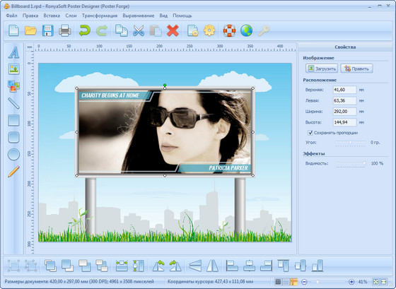 RonyaSoft Poster Designer - легкая в использовании программа для дизайна и печати привлекательных индивидуальных постеров и баннеров. Коллекция готовых шаблонов плакатов и интуитивный пользовательский интерфейс позволяют делать собственные постеры и баннеры практически за несколько кликов.