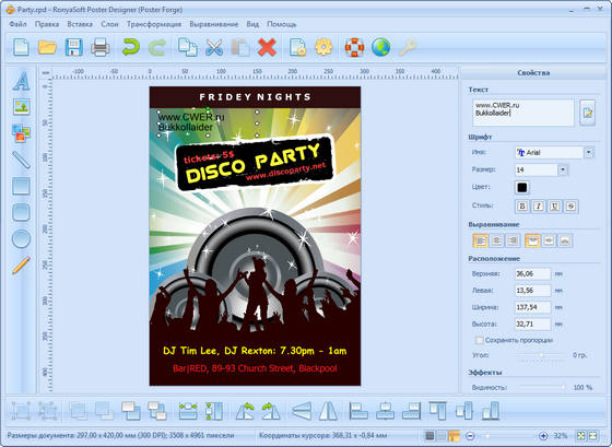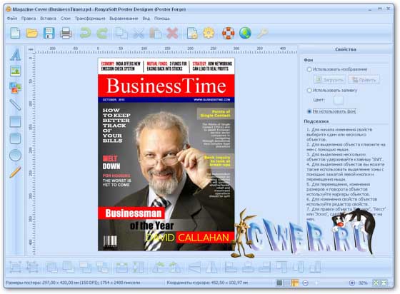 RonyaSoft Poster Designer - легкая в использовании программа для дизайна и печати привлекательных индивидуальных постеров и баннеров. Коллекция готовых шаблонов плакатов и интуитивный пользовательский интерфейс позволяют создавать собственные постеры и баннеры практически за несколько кликов. Любая деталь в шаблоне постера может быть изменена соответственно вашим требованиям, например: рисунок, текст, цвет, размер, стиль и т.п. Мастер печати поможет распечатать плакаты на домашнем или офисном принтере. Также вы сможете экспортировать плакаты в изображения для печати в службах печати или для использования в блогах, на форумах или социальных сайтах. Возможность печати многостраничных постеров и баннеров также предусмотрена.