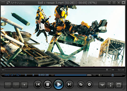jetVideo – простой и стильный оптимизированный мультимедийный проигрыватель с возможностью преобразования видео файлов в желаемый формат.