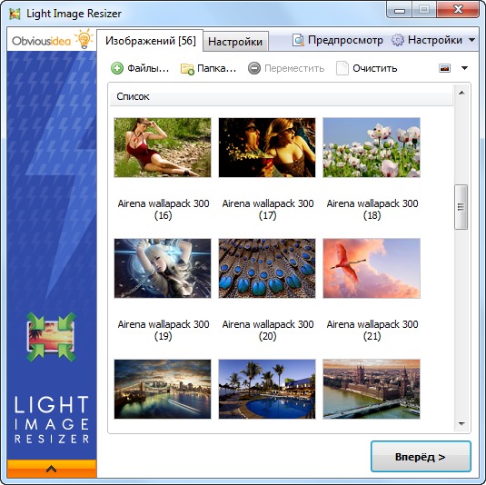 Light Image Resizer ранее известный как VSO Image Resizer - программа для изменения размеров цифровых картинок и изображений в различных графических форматах (на данный момент поддерживается работа с файлами JPEG, GIF, BMP, TIFF, CR2, NEF и т.д.). Также в утилите имеются возможности для компрессии файлов, конвертирования из одного формата в другой, экспорта, наложения и управления картинками. Light Image Resizer интегрируется в оболочку Windows, может работать в пакетном режиме, обладает расширенными опциями настройки для продвинутых пользователей.