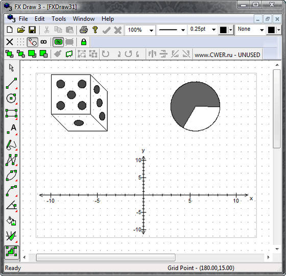 FX Draw - программа, являющаяся отличным математическим инструментом для рисования диаграмм и различных типов графиков. Вычисляет углы, длину дуги, радиусы, площади, параметры кривых и многое другое. Всё это можно представить в виде динамической демонстрации. Интегрируется с Microsoft Word. Программа будет очень полезна особенно для учителей математики и студентов ВУЗов.