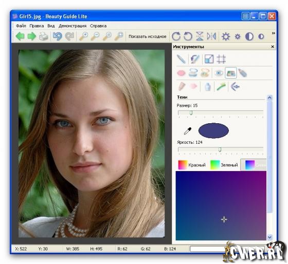 Beauty Guide - позволяет нанести макияж и устранить косметические дефекты непосредственно на фотографии. Отредактированные с помощью этой программы, Ваши фото станут еще лучше!