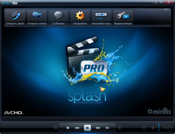 Новинка от компании Mirillis, медиаплеер Splash, оптимизированный для проигрывания видео в высоком разрешении (High Definition AVC/H.264) и просмотра цифровых телевизионных каналов (DVB-T). Splash Player имеет встроенный кодек Mirillis AVC/H.264, который является собственной разработкой компании, и способен обеспечить высококачественное четкое и гладкое изображение в высоком разрешении. Плеер отличается стильным, удобным интерфейсом.