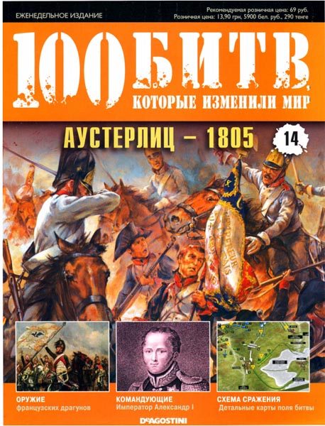 Серия "100 великих битв" предложит Вам описание наиболее значащих военных кампаний в мировой истории. В любом номере Вы найдете полнейшее отображение одной из известных битв, добавляя ярчайшее представление течение битвы, и также взгляды историков о противоборствующих сторонах.