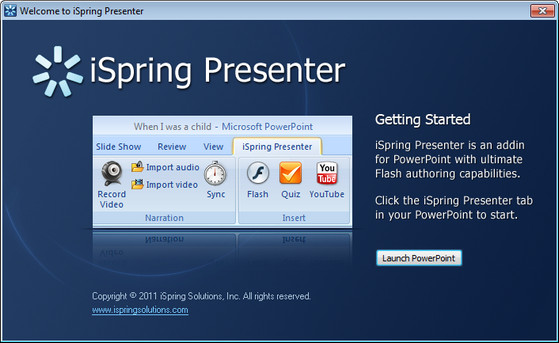 iSpring Presenter - программа для преобразования презентаций PowerPoint в формат Flash. Продукт ориентирован на пользователей Microsoft PowerPoint и позволяет создавать презентации, учебные курсы, баннеры, открытки в формате Flash. Преобразование занимает несколько секунд, а качество полученных Flash-презентаций остается неизменным.