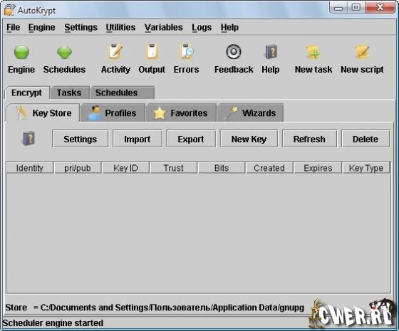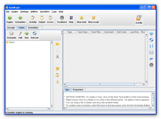 AutoKrypt – программа для шифрования файлов на JAVA, которая автоматически шифрует и дешифрует файлы и папки. Программа поддерживает парольный секретный ключ, открытый и закрытый ключ, OpenPGP пароль, OpenPGP шифрование открытым и закрытым ключом, содержит механизм генерации ключей и ключевое хранилище для управления ключами. Программа может использоваться для выполнения автоматических задач, используя встроенный планировщик. Программа также содержит функции уведомления по email, просмотрщик zip файлов, расширенное логирования, удаленный контроль задач, и много чего еще. Программа может также встраиваться в другие Windows приложения для выполнения связанных задач.