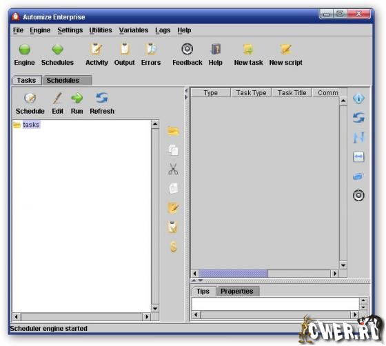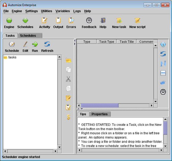 Automize - это мощная программа для автоматизации различных процессов. Программа позволяет автоматизировать скачивание файлов, резервное копирование, синхронизацию с удалёнными FTP серверами, проверку электронной почты, архивирование и многие другие действия. Automize может управляться с удаленного компьютера и сигнализировать о ходе выполнения заданий на электронную почту. Задания в программе отображаются в привычном стиле проводника, для каждого запланированного задания имеется небольшой файл установки, ведутся отдельные FTP-логи и логи шифрования для каждого задания. Программа содержит заготовки для выполнения наиболее распространенных заданий, остальные задания пользователь должен настраивать вручную.
