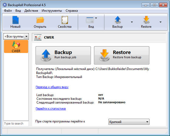 Backup4all - программа, предназначенная для создания резервных копий важной информации и данных. Обладает удобным и понятным интерфейсом, большим набором настроек для тонкого конфигурирования работы программы. Имеется встроенный мастер, позволяющий создавать резервные копии буквально одним кликом мыши.