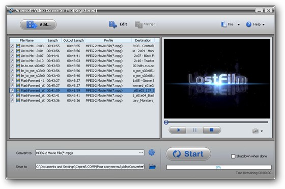 Aneesoft Total Media Converter - мощная, универсальная программа которая состоит из: граббера видео DVD, конвертера видео файлов и извлечение аудио из DVD и видео файлов. Утилита поддерживает AVI, MPEG, WMV, MP4, RM, MOV, 3GP, VOB, FLV, HD видео форматы (AVI, MPEG, WMV, MP4, H.264/AVC, MOV, MKV, AVCHD, 3GP) и другие популярные видео и аудио форматы. Программа также способна создавать файлы, совместимые с iPod, iPod Touch, iPod Touch 2, iPod Nano, iPod Nano 4, iPod Classic и другими портативными устройствами.