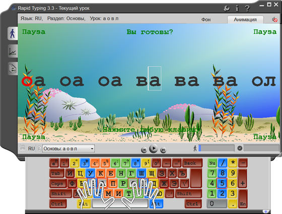 Клавиатурный тренажер RapidTyping Tutor - позволит вам и вашей семье освоить слепой десятипальцевый метод печати всего за несколько уроков. Удобный в использовании тренажер успешно обучит вас и ваших детей печатать быстро и без ошибок в легкой игровой форме. С помощью RapidTyping Typing Tutor вы сможете научиться эффективно использовать клавиатуру в любой раскладке – русской или английской, и повысить скорость печати кириллицей и латиницей.