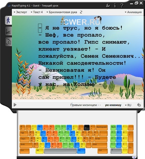 RapidTyping Tutor - бесплатная программа позволяющая улучшить навыки набора текста через серию легких уроков, осваивая слепой десятипальцевый метод печати. Удобный в использовании тренажер успешно обучит вас и ваших детей печатать быстро и без ошибок в легкой игровой форме. С помощью RapidTyping Typing Tutor вы сможете научиться эффективно использовать клавиатуру в любой раскладке – русской или английской, и повысить скорость печати кириллицей и латиницей.