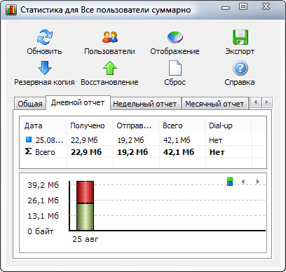 NetWorx - бесплатная утилита для учета интернет-трафика и мониторинга скорости Интернета на вашем компьютере. Программа работает с любым кабельным или беспроводным подключением, а также модемом, предоставляя удобную статистику, отчеты и графики. Вы сможете измерить реальную скорость и загрузку вашего интернет-подключения, просматривать ежедневные, недельные и месячные отчеты и получать уведомления о перерасходе трафика. Интересным применением NetWorx можно назвать и контроль за сетевой активностью ПК. Если объём трафика вдруг возрос - скорее всего, в системе поселился вирус или троян.