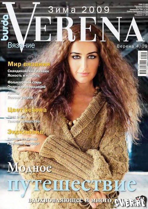 Verena – журнал для творческих женщин, посвященный вязанию для взрослых и детей. Каждый месяц, в соответствии с сезоном, журнал знакомит своих читателей с новинками трикотажной моды, представляя их в виде моделей для самостоятельного исполнения. Все модели снабжены подробными инструкциями и наглядными чертежами и схемами. Издание будет полезно как для тех, кто любит и умеет вязать, так и для тех, кто только хочет научиться этому увлекательному занятию.