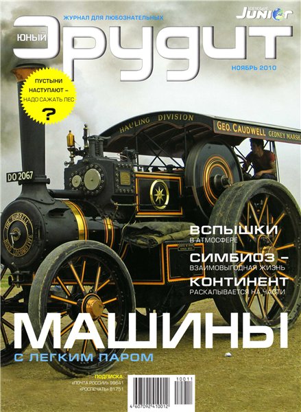 Ежемесячный журнал «Юный эрудит» адресован детям и подросткам. В занимательной форме журнал расскажет любознательным читателям об истории и сегодняшнем дне науки и техники, выдающихся ученых и первооткрывателях. Ребята узнают, как устроены машины и механизмы, от чего возникают смерчи и циклоны, что вызывает землетрясения и извержения вулканов. Специальные рубрики посвящены современным компьютерным и авиакосмическим технологиям, загадкам живой природы, прогнозированию будущего, истории оружия.