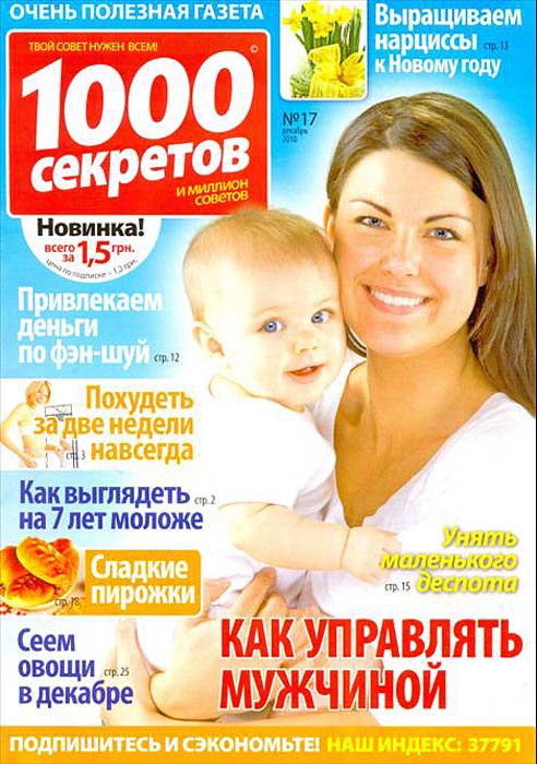 "1000 секретов" - народный журнал, который будет полезен каждому без исключения. Он содержит по несколько статей из каждой области человеческой жизни: воспитание детей, кулинария, здоровье, строительство и ремонт, сад и огород, умелые руки, дизайн, физическое развитие, психологические и юридические консультации.