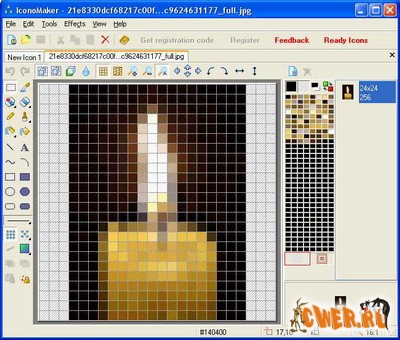 IconoMaker - программа для создания и редактирования иконок. Позволяет изготавливать как стандартные (16x16, 32x32, 48x48), так и произвольного размера иконки с глубиной цвета до 16 млн., включая для ОС Windows XP в 32-bit.