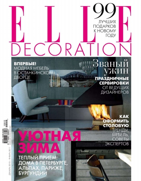 ELLE Decoration - самый красивый и полезный международный журнал о современном интерьере. ELLE Decoration является источником вдохновения для ведущих дизайнеров и декораторов мира. Для людей, задумывающихся о строительстве и обустройстве дома, он служит путеводителем в мире современных материалов и тенденций интерьерной моды. В каждом номере — архитектурные новости, выбор лучших дизайн-объектов и знакомство с их создателями, практические советы и подробные репортажи о проектах признанных мастеров.