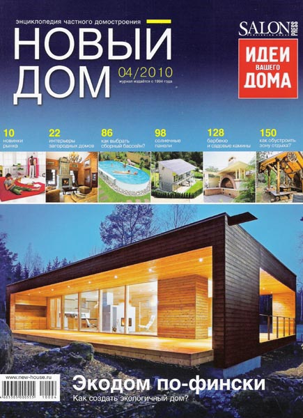 В журнале «НОВЫЙ ДОМ» публикуются наиболее актуальные материалы по вопросам строительства и обустройства загородных домов, оформления придомовой территории, создания ландшафтных композиций. Кроме этого, содержит самую интересную информацию о стилях, направлениях, необычных идеях и их воплощениях в интерьерах коттеджей. «Новый дом» предлагает набор планировочных и оформительских решений, практические рекомендации по созданию различных конструкций, подробные описания этапов строительства домов по различных технологиям, а также выявляет проблемы, которые возникают в процессе строительства дома и последующей эксплуатации, предлагает варианты их решения