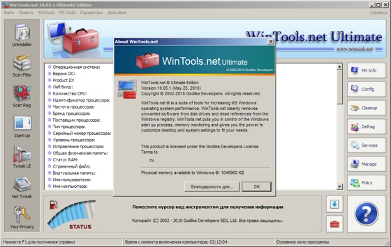WinTools.net Ultimate – набор инструментов для оптимизации операционной системы Windows.