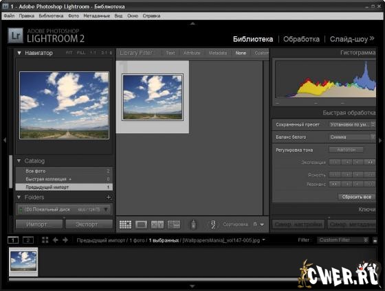 Программа Photoshop Lightroom предназначена для профессиональных фотографов. В основе программы - утилита Adobe Camera Raw, возможности которой в Lightroom значительно расширены. Версия 2.3 добавляет поддержку камер Nikon D3X и Olympus E-30, а также исправляет ряд ошибок, обнаруженных после выхода предыдущей версии программы.