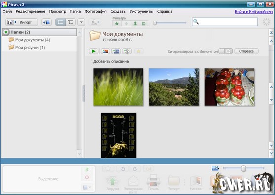 Picasa – программа-органайзер ваших фотографий и видеоматериалов. Это программное обеспечение, с помощью которого Вы можете искать, просматривать, редактировать, печатать фотографии и обмениваться ими, превращать фотографии в "фильм" или коллаж, создавать слайд-шоу и многое другое.