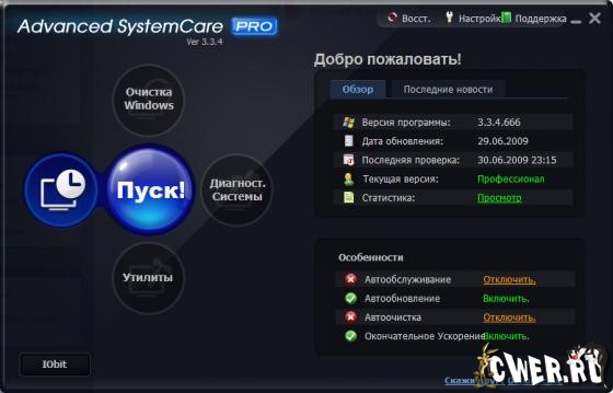 Благодаря возможностям Advanced SystemCare Pro (в прошлом Advanced WindowsCare) вы сможете очистить ПК от шпионского и рекламного ПО, обнаружить и заранее устранить возможные угрозы и бреши в системе безопасности ОС, исправить ошибки в системном реестре, очистить временные и ненужные файлы, управлять списками автозагрузок, оптимизировать работу систем. Все для оптимизации, настройки, стабильности, защиты приватности и повышения производительности компьютеров, находящихся под управлением операционными системами Windows 2000/XP.
