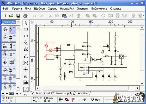 sPlan - простой и удобный инструмент для черчения электронных и электрических схем. В этой версии, что очень важно, добавлена библиотека ГОСТ, увеличено колличество элементов пользовательской и стандартной библиотек. Готовые элементы легко редактируются, а создание своих не составляет труда, так как имеется специальный редактор элементов. Хорошая альтернатива громоздким программам Electronics Workbench и подобным.